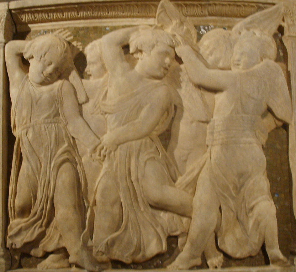 They are fantasy creatures of mischief and can be regarded as "spiritelli" (spirits) whose function here is to make fun of humans or deities, in this case, mainly Mars. Their faces are directly influenced by Donatello's angels (1428-38) on the Prato Cathedral outside pulpit,